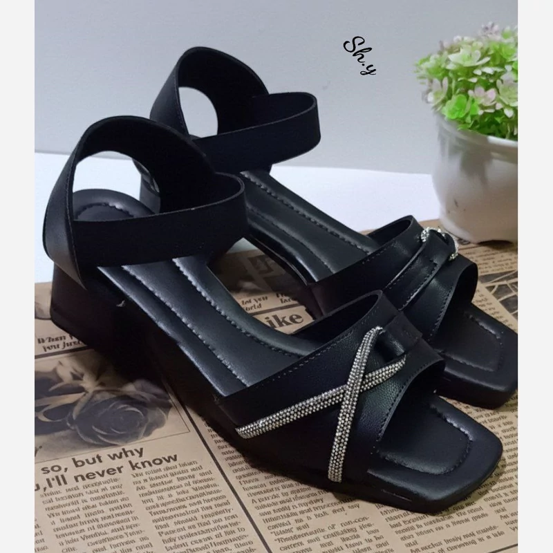 صندل نگین هشتی جلو کش زنانه زیبا و شیک رنگ مشکی