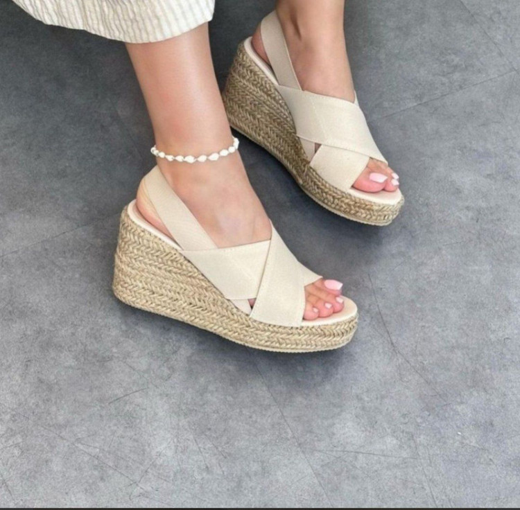 صندل لژدار کنفی شیک و زیبا سایز 37تا40 رنگ بندی مشکی و کرم