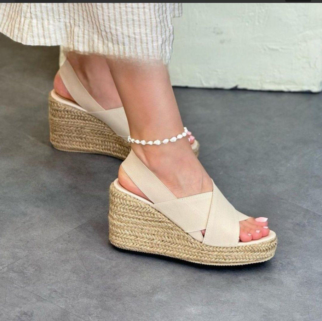 صندل لژدار کنفی شیک و زیبا سایز 37تا40 رنگ مشکی و کرم لژ هشت سانت زیره پی یو سبک و راحت با بهترین جنس و کیفیت